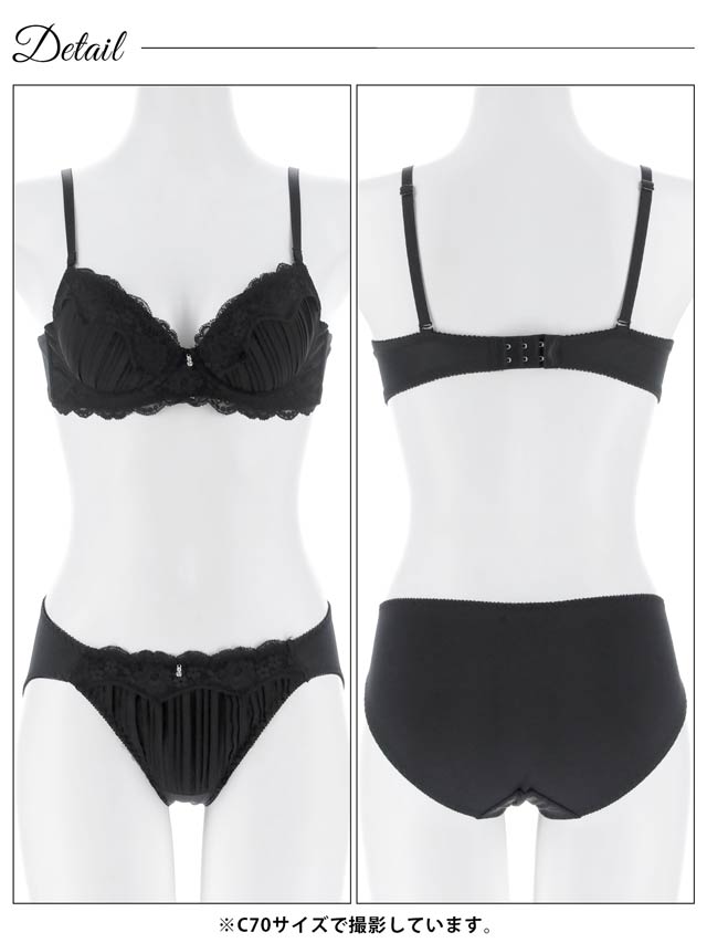 ダスティサテンレース育乳脇高ブラジャー&フルバックショーツ