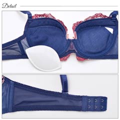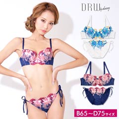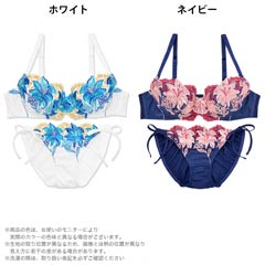 ハイビスカス刺繍を贅沢にあしらった豪華なランジェリー。フルバックショーツは人気の紐パンデザイン!!カラバリは2種類で、ネイビーの生地にピンクの刺繍と、ホワイトの生地にブルーの刺繍の組み合わせです☆とにかくメリハリのある色使いなので、派手好きさんや、カレの目を引きたいあなたにオススメです!!