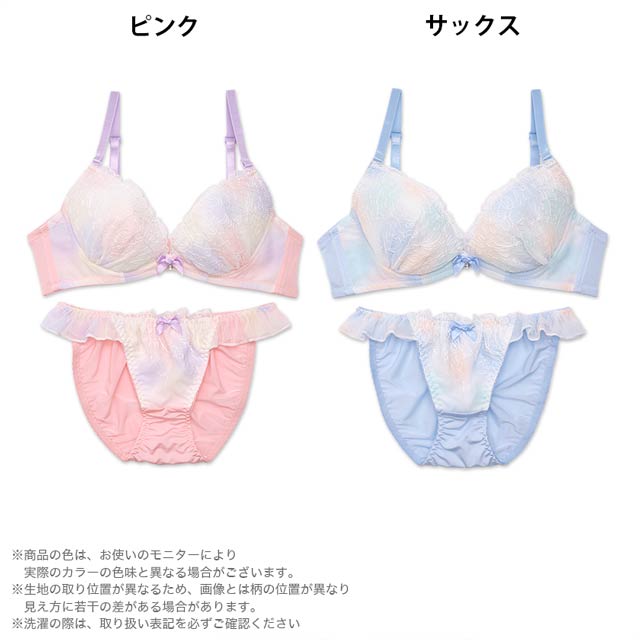 小花刺繍ONパステルグラデーションブラジャー&フルバックショーツ[dr21w18]