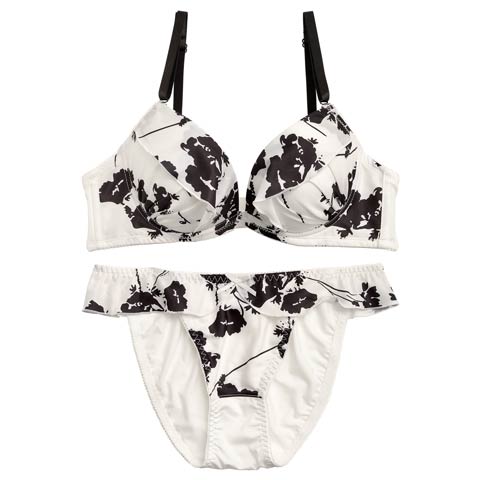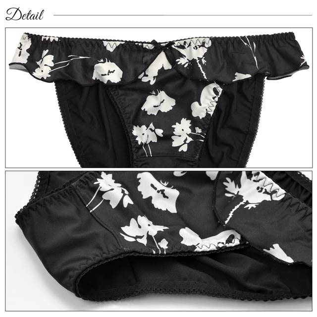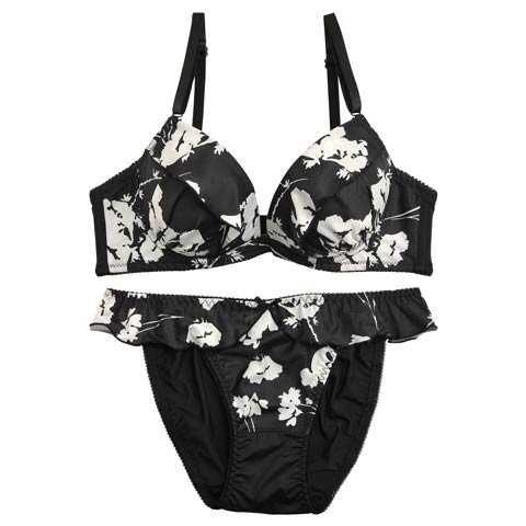 モノトーングレースフリルブラジャー&フルバックショーツ[プチプラ]