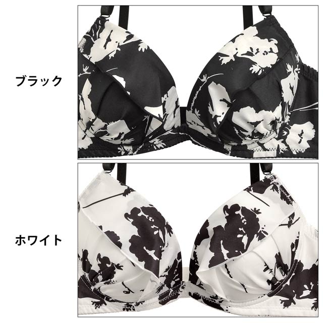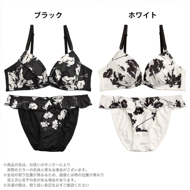 【ノンワイヤー】【EFサイズ】バイカラーフラワーブラジャー&フルバックショーツ