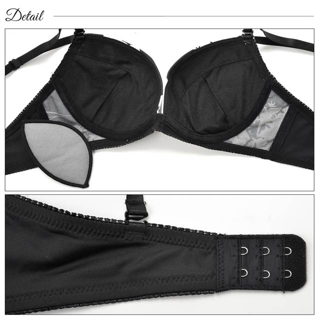 オールレースカットストリング育乳脇高ブラジャー&バック透けフルバックショーツ