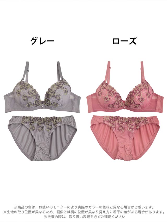 【EFサイズ】ブライトローズエンブロイダリーブラジャー&フルバックショーツ