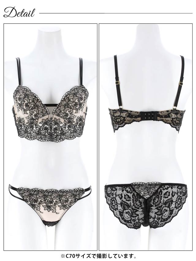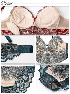 ダスティブルームエンブロイダリー育乳脇高ブラジャー&バック透けフルバックショーツ