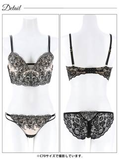 オールレースカットストリング育乳脇高ブラジャー&バック透けフルバックショーツ