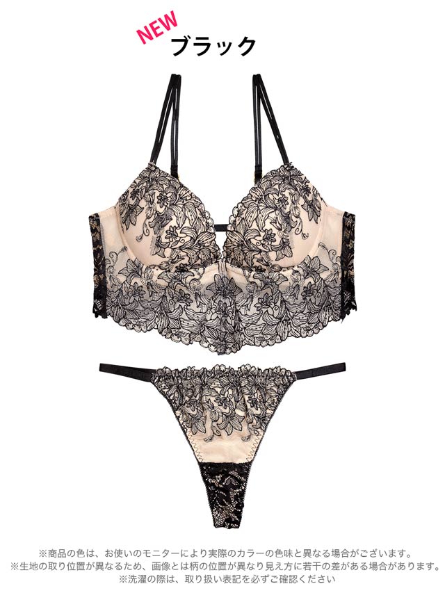 12/2再販!ダスティブルームエンブロイダリー育乳脇高ブラジャー&バック透けフルバックショーツ[激売れ]