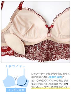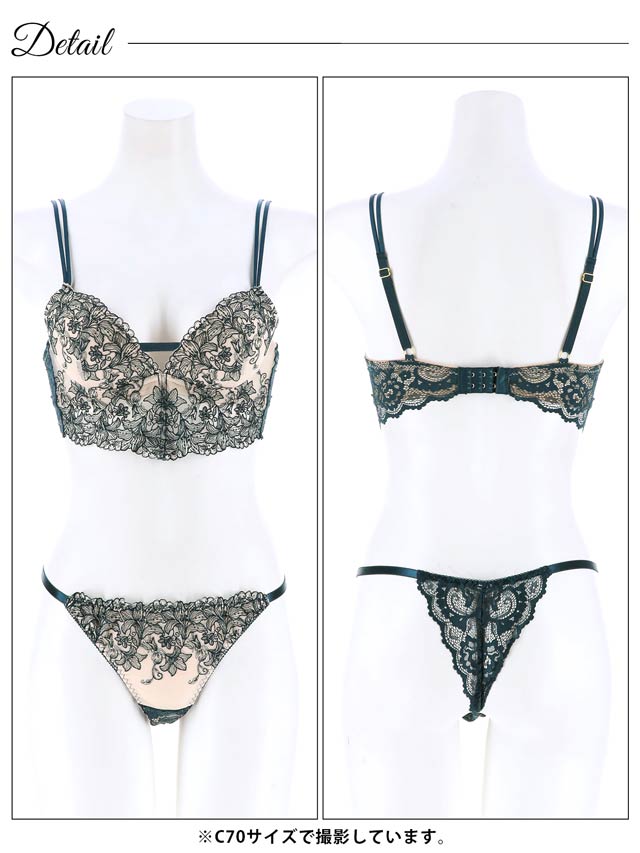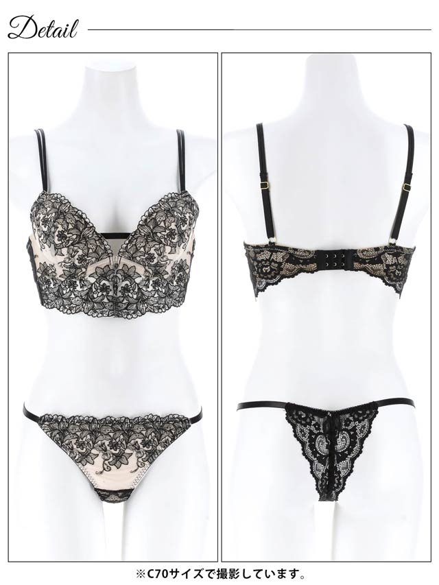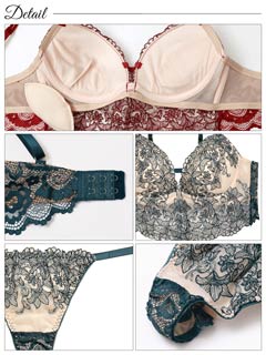 ダスティブルームエンブロイダリー育乳脇高ブラジャー&バック透けフルバックショーツ