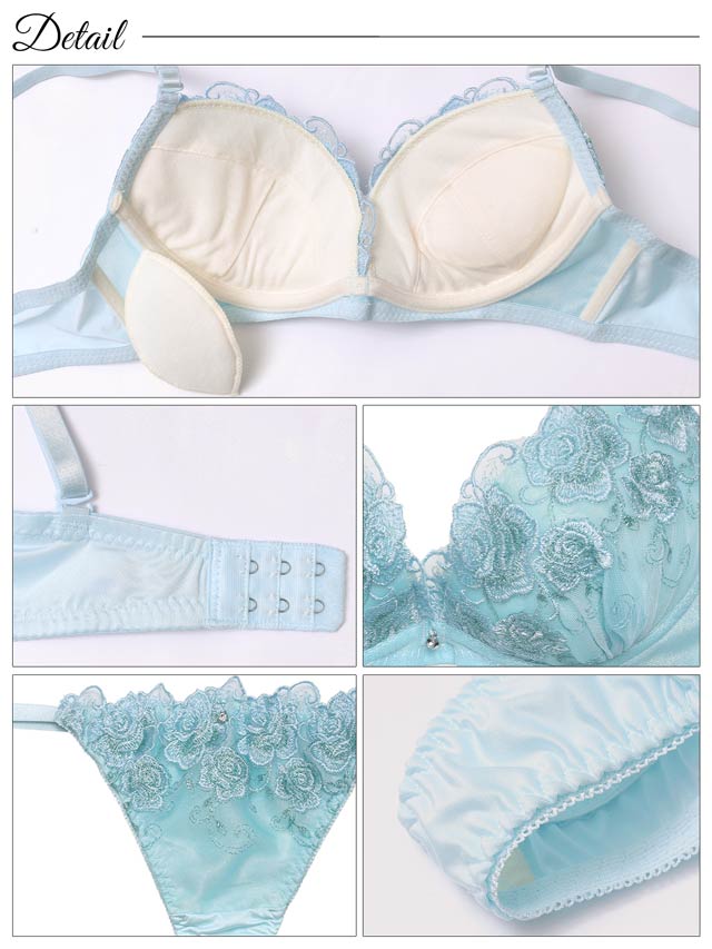 ダスティブルームエンブロイダリー育乳脇高ブラジャー&バック透けフルバックショーツ