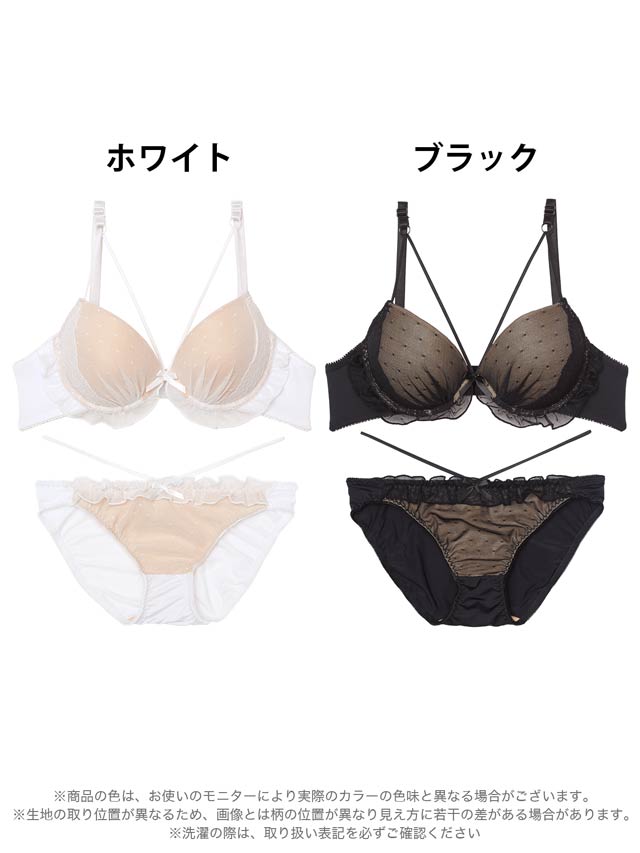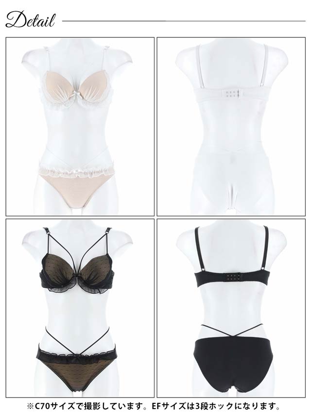 【EFサイズ】フェミニンドットフリルブラジャー&フルバックショーツ[大人気]