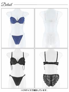 オールレースカットストリング育乳脇高ブラジャー&バック透けフルバックショーツ