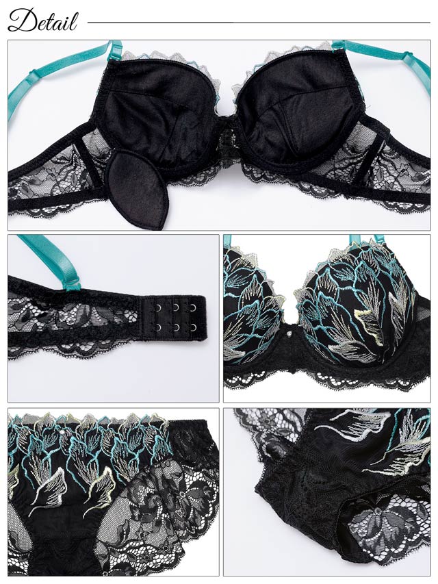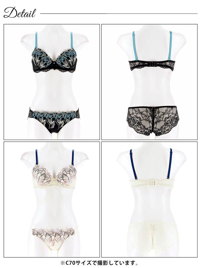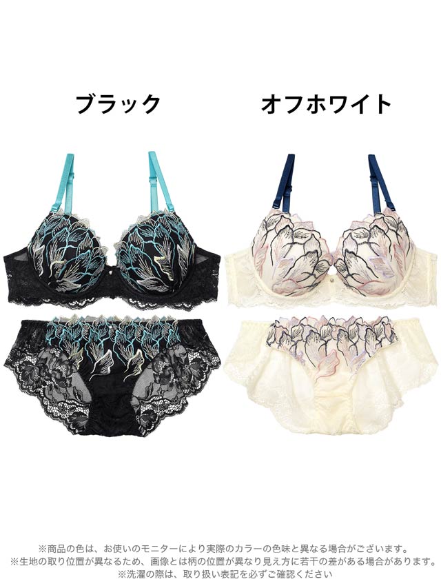 【EFサイズ】フローラルシックエンブロイダリーブラジャー&バック透けフルバックショーツ[大人気]