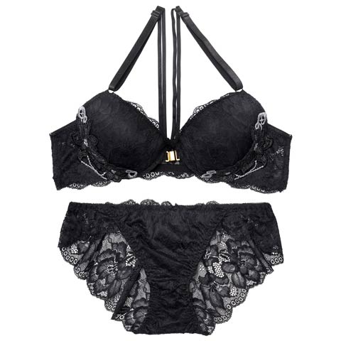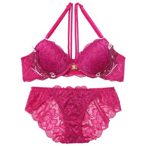 オールレースカットストリング育乳脇高ブラジャー&バック透けフルバックショーツ