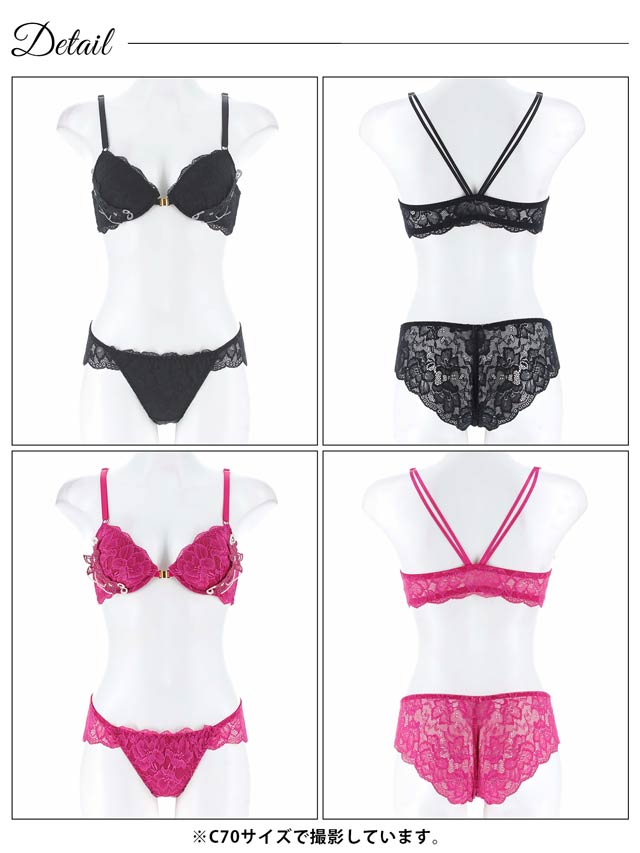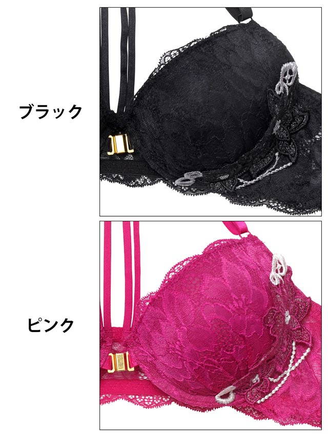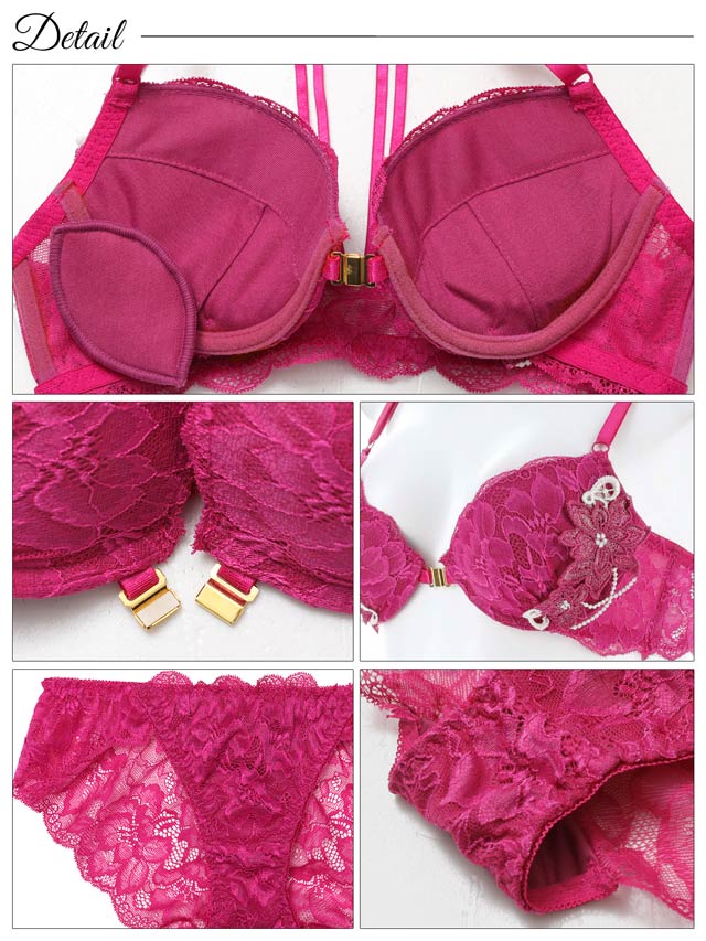 フロレゾンローズレース育乳脇高ブラジャー&サイド紐バック透けフルバックショーツ