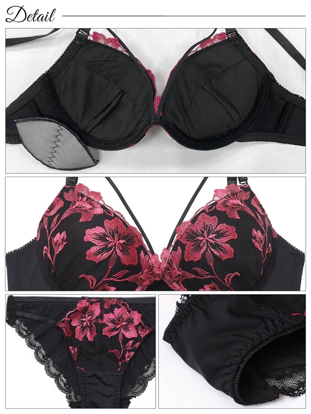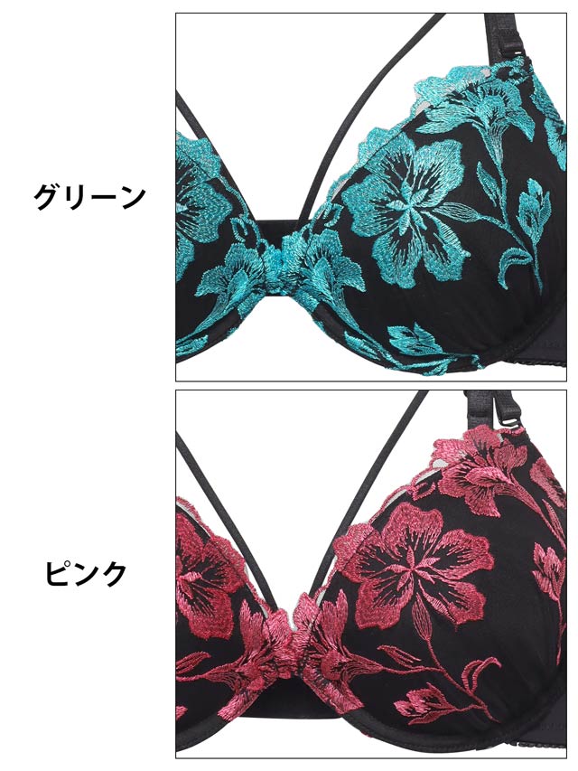 フロレゾンローズレース育乳脇高ブラジャー&サイド紐バック透けフルバックショーツ