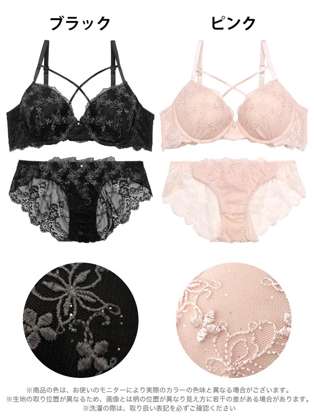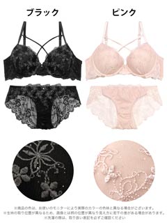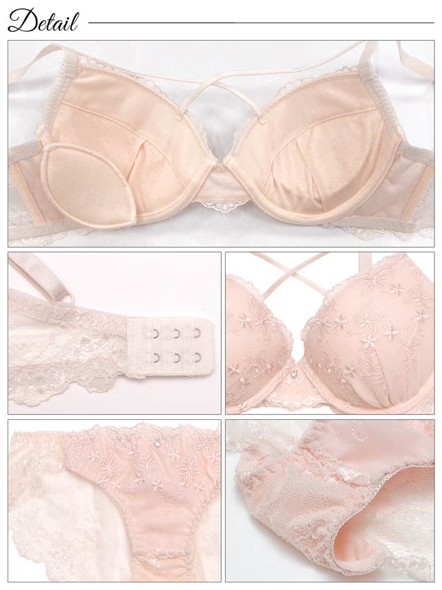 ダスティブルームエンブロイダリー育乳脇高ブラジャー&バック透けフルバックショーツ