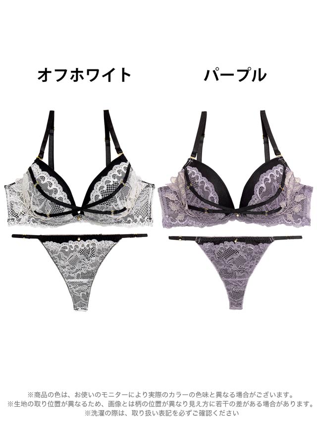 オールレースカットストリング育乳脇高ブラジャー&バック透けフルバックショーツ