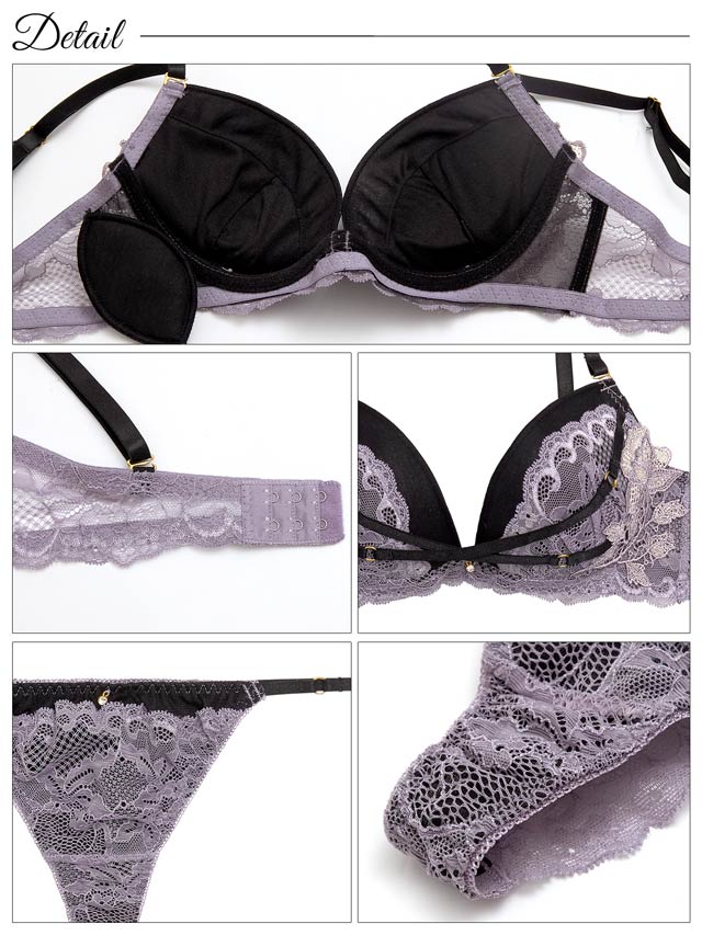 ダスティブルームエンブロイダリー育乳脇高ブラジャー&バック透けフルバックショーツ