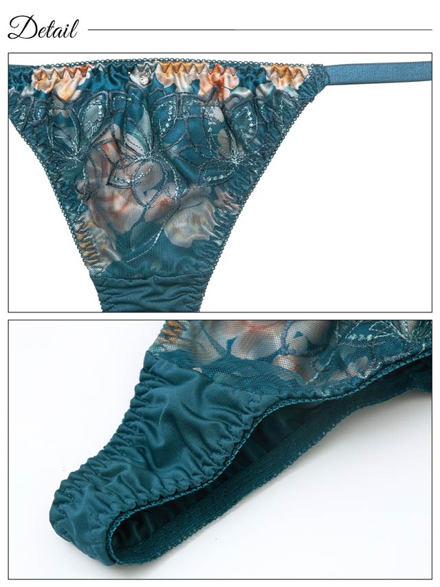 ダスティブルームエンブロイダリー育乳脇高ブラジャー&バック透けフルバックショーツ