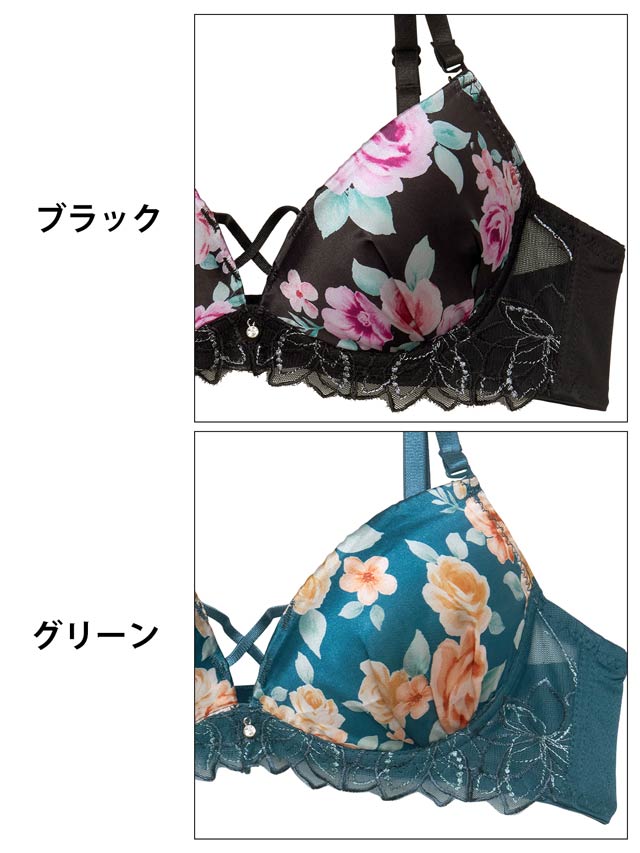 11/7新作!【EFサイズ】ダスティフローラルレース育乳脇高ブラジャー&フルバックショーツ[大人気]