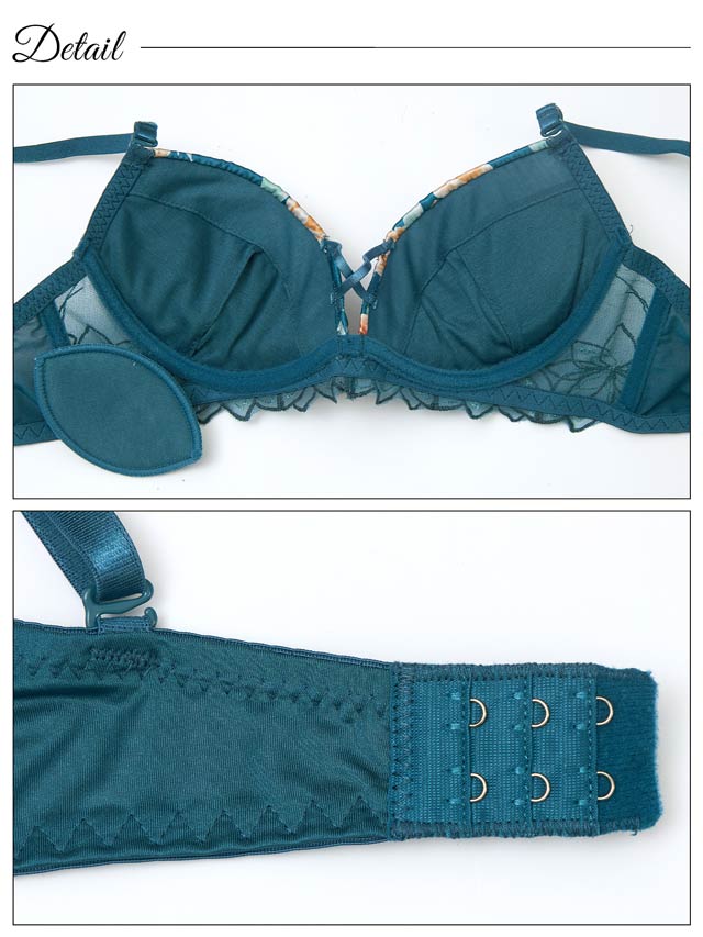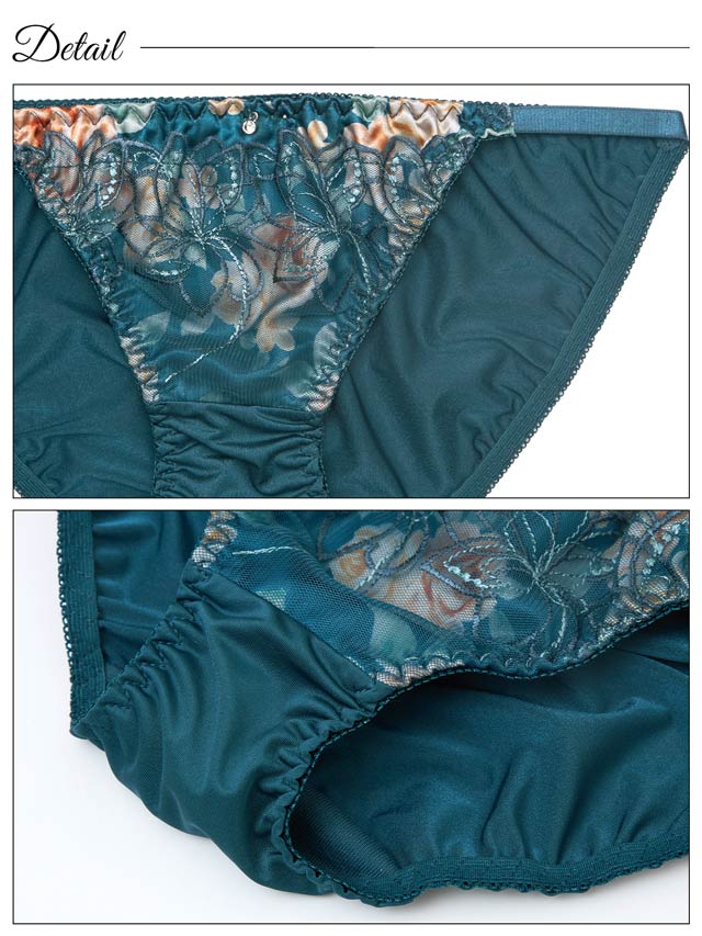 ダスティブルームエンブロイダリー育乳脇高ブラジャー&バック透けフルバックショーツ