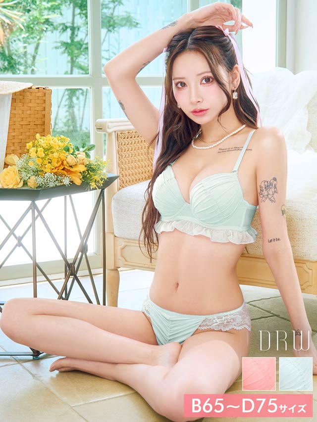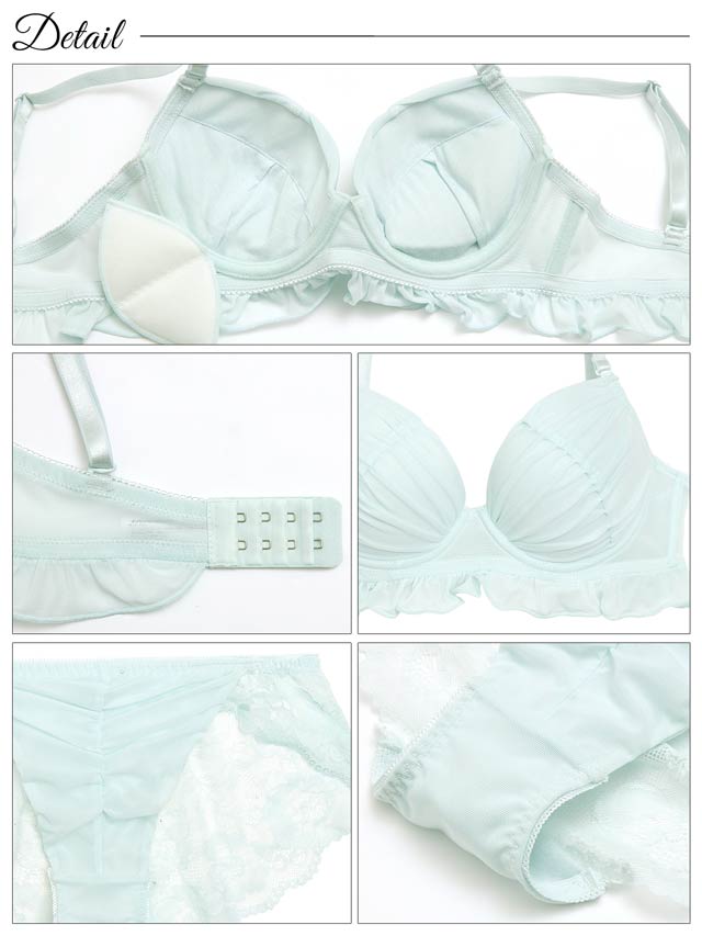 フェアリーフリルギャザーブラジャー&バック透けフルバックショーツ[激売れ][週替][スーパーセール]