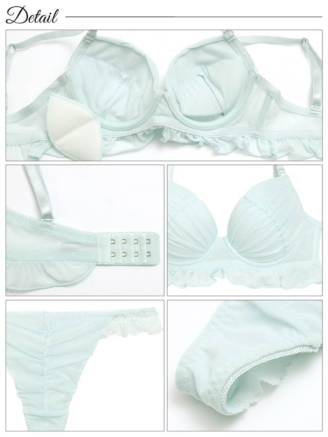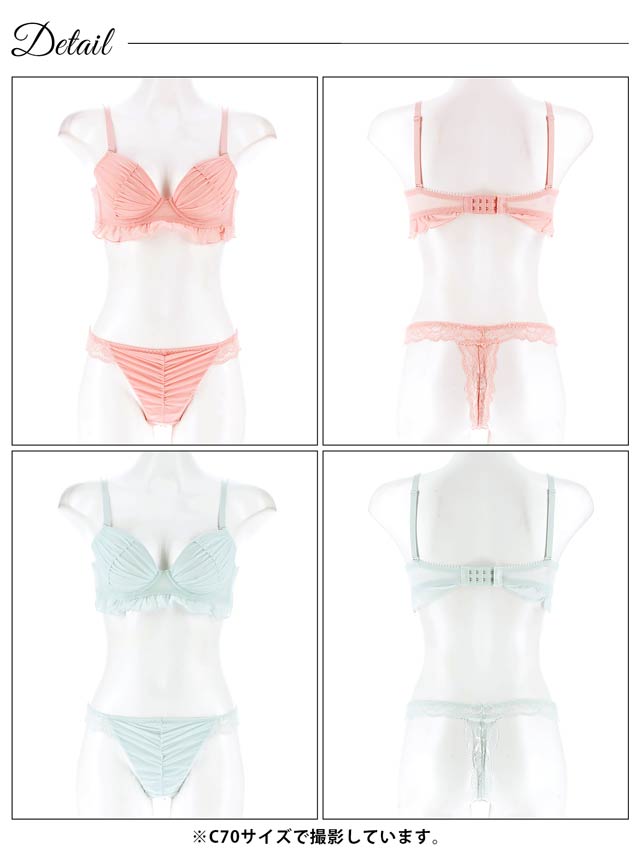 フェアリーフリルギャザーブラジャー&バック透けTバックショーツ[激売れ]