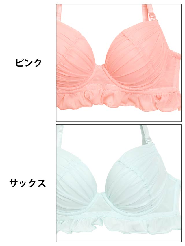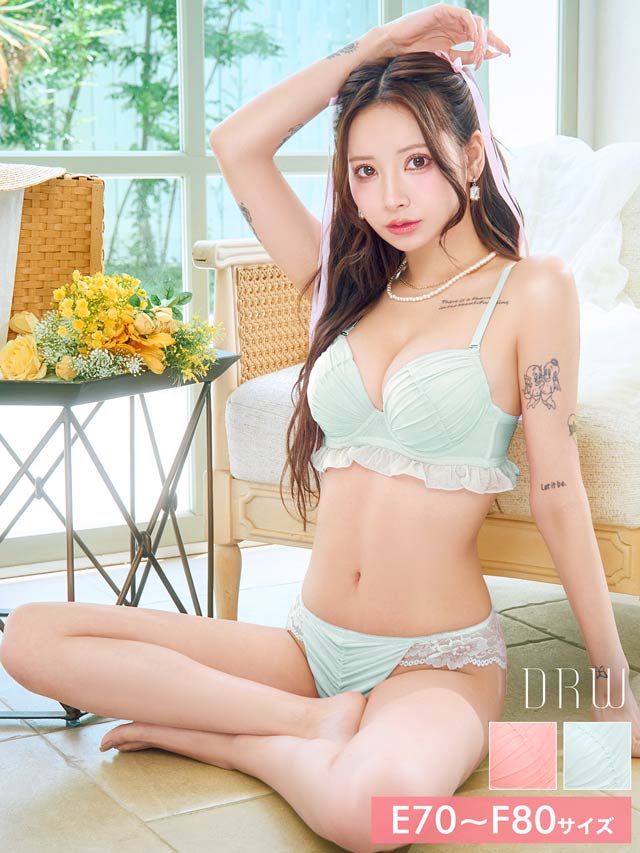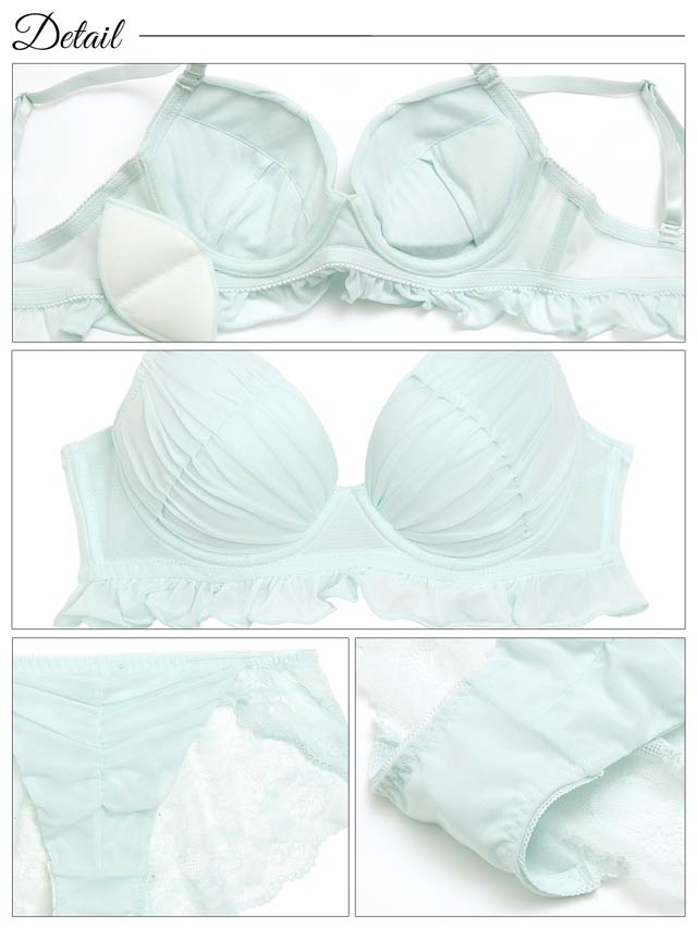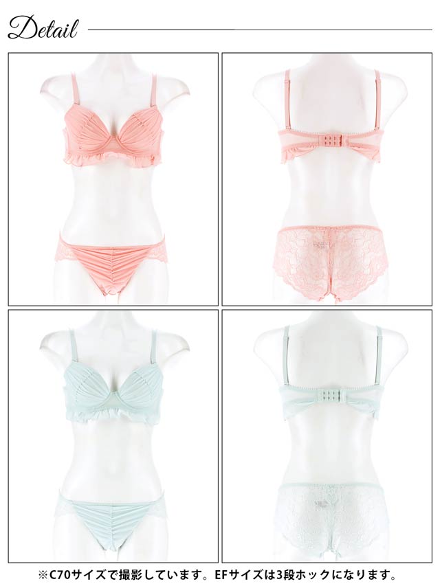 【EFサイズ】フェアリーフリルギャザーブラジャー&バック透けフルバックショーツ[大人気]