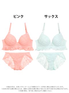 10/10新作!【EFサイズ】フリルレースブロッサム育乳脇高ブラジャー&フルバックショーツ[大人気]
