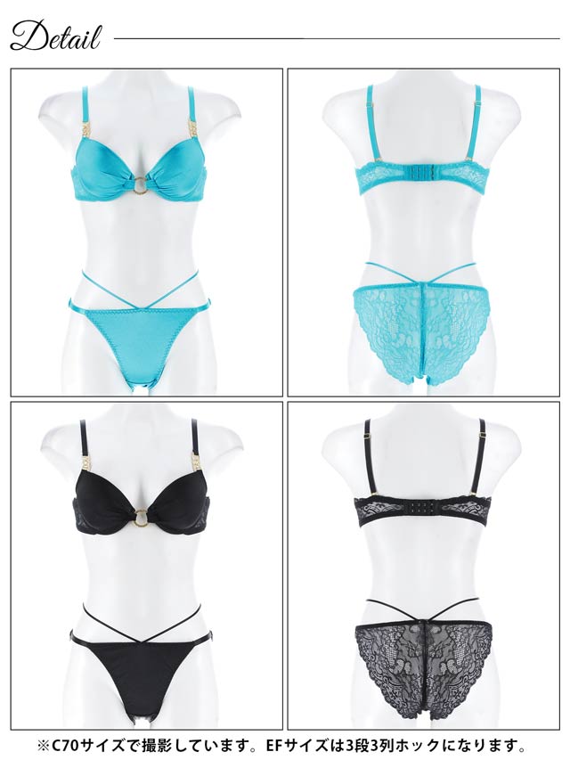 【EFサイズ】グロッシービジューリングブラジャー&バック透けフルバックショーツ[大人気]