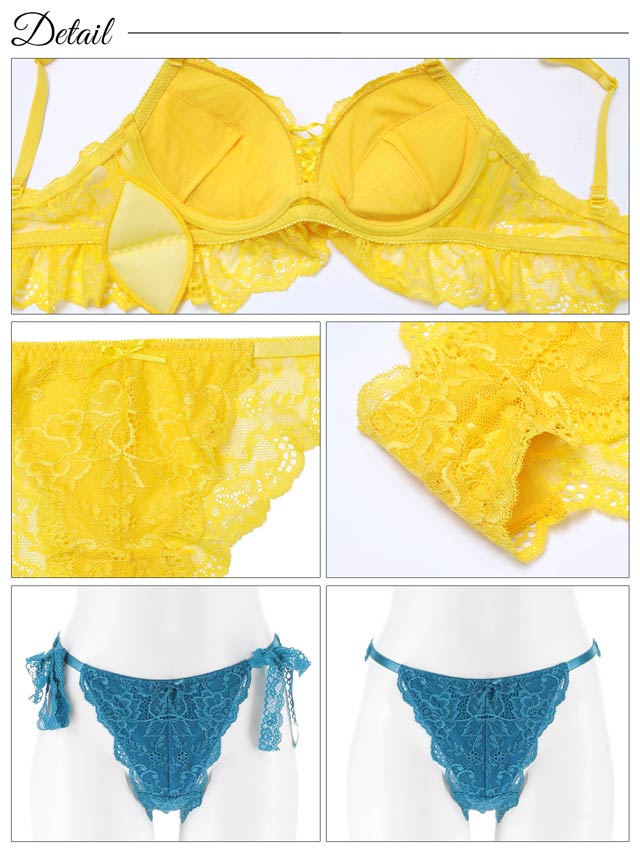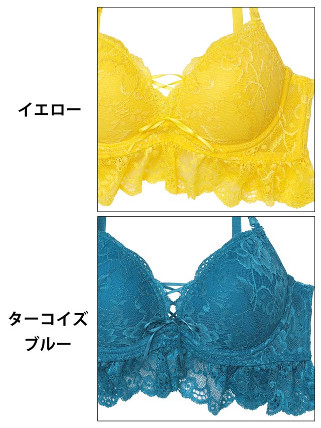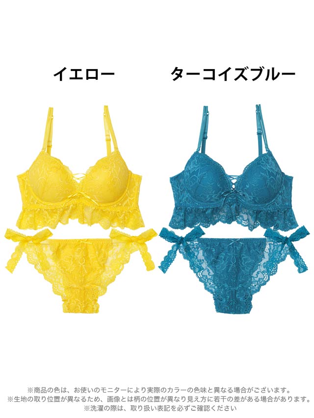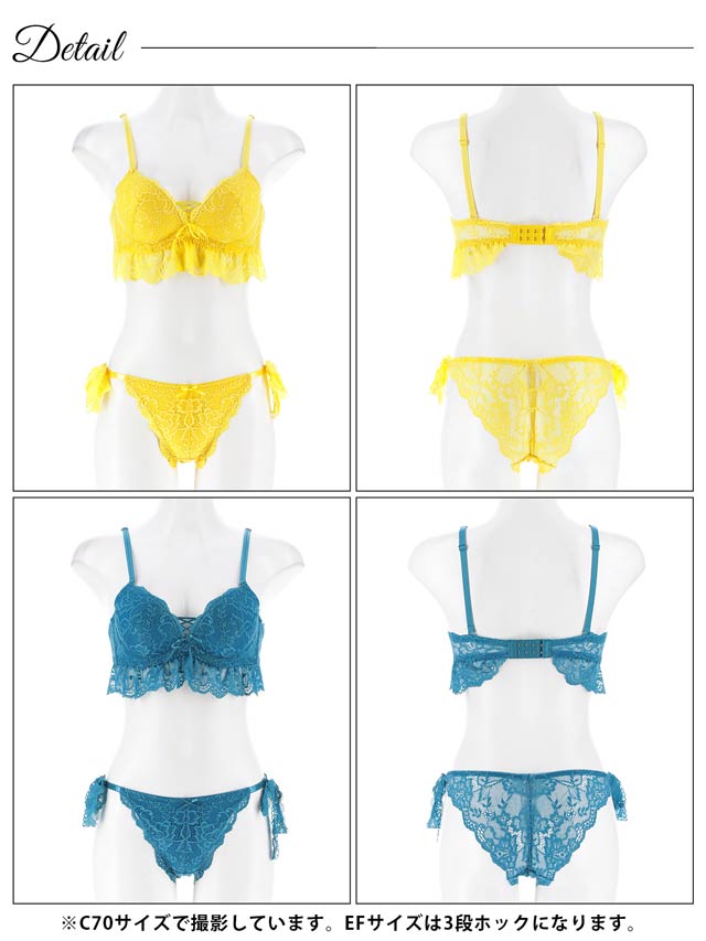 【EFサイズ】フレッシュレーシィレースアップ紐リボン付きブラジャー&バック透けフルバックショーツ[大人気]