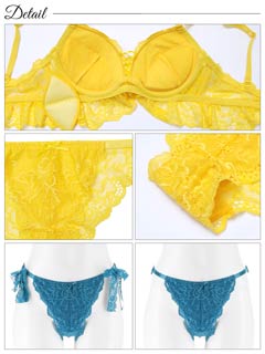 オールレースカットストリング育乳脇高ブラジャー&バック透けフルバックショーツ