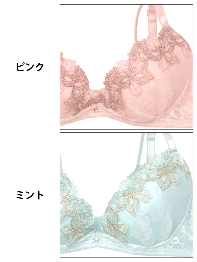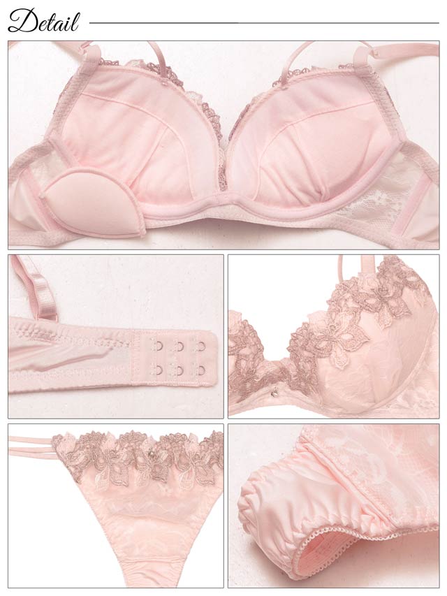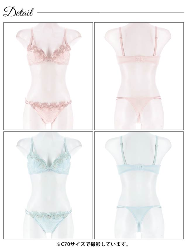 ダスティブルームエンブロイダリー育乳脇高ブラジャー&バック透けフルバックショーツ