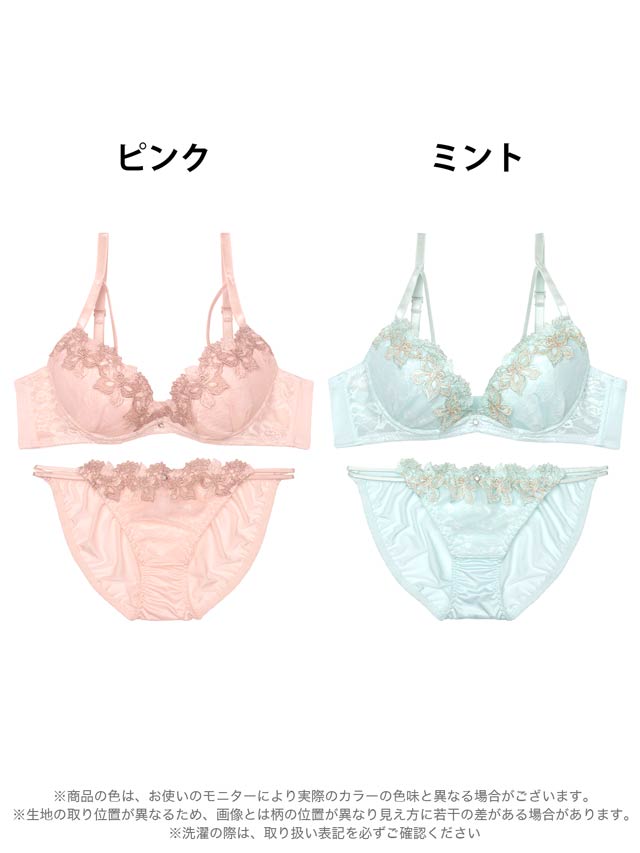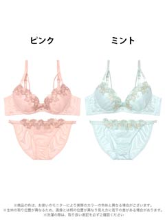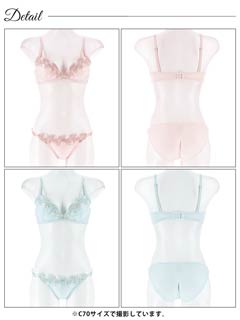 ダスティブルームエンブロイダリー育乳脇高ブラジャー&バック透けフルバックショーツ