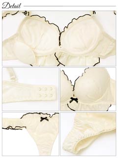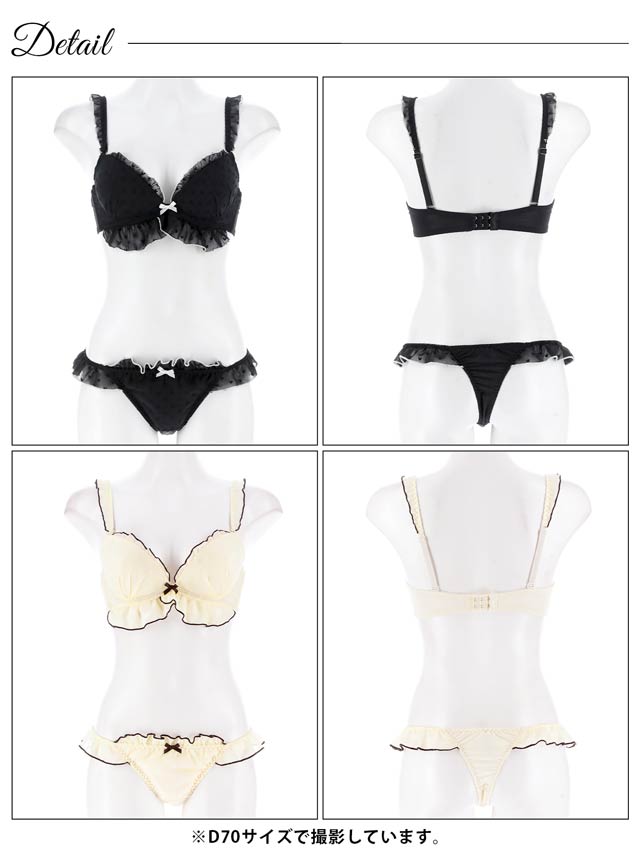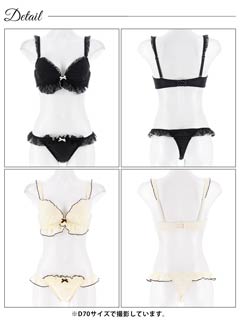 【かとゆり着用】ガーリーパイピングフリルブラジャー&Tバックショーツ[大人気]