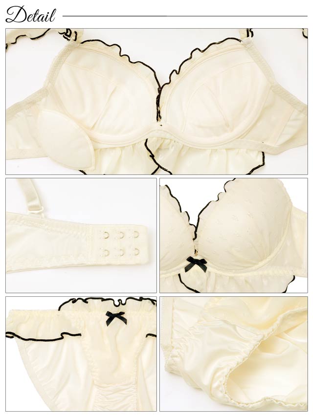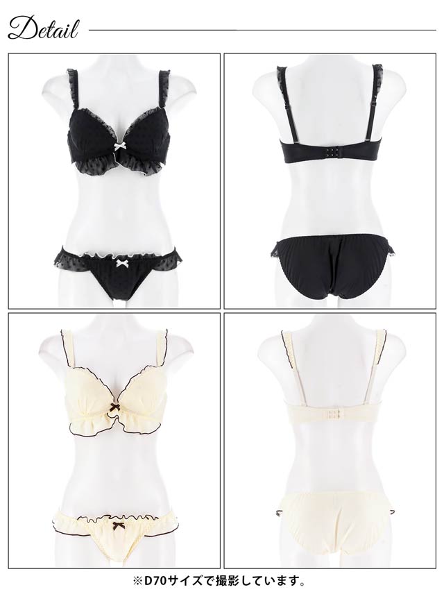 10/7再販!【かとゆり着用】【EFサイズ】ガーリーパイピングフリルブラジャー&フルバックショーツ[大人気]