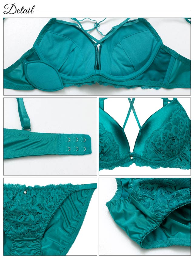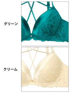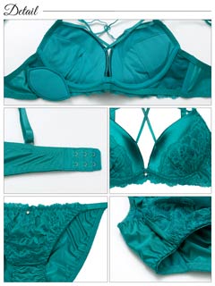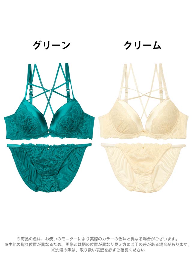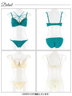 オールレースカットストリング育乳脇高ブラジャー&バック透けフルバックショーツ