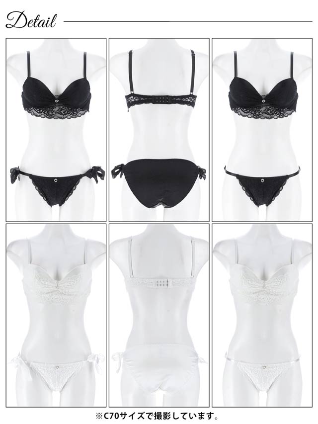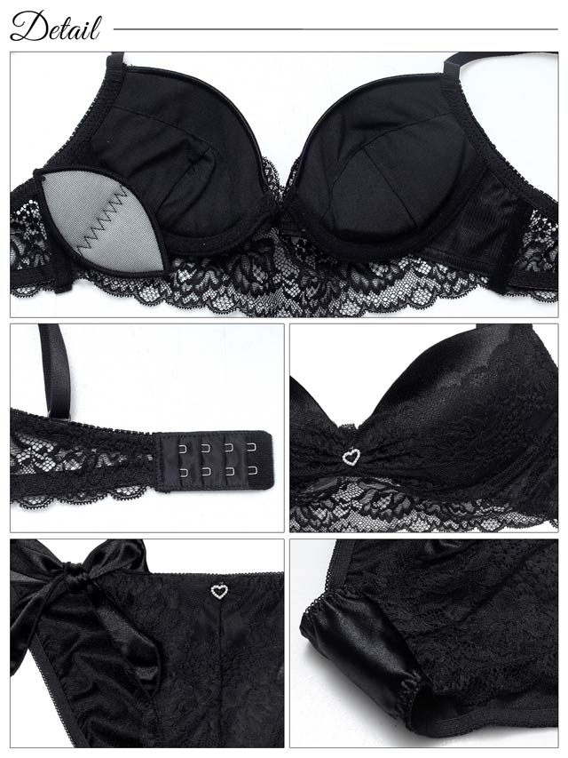 オールレースカットストリング育乳脇高ブラジャー&バック透けフルバックショーツ