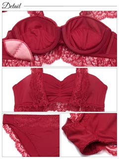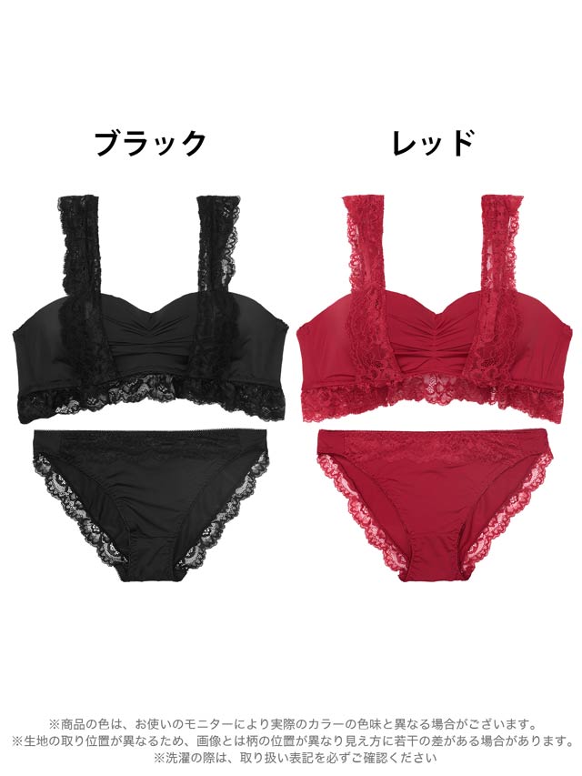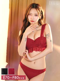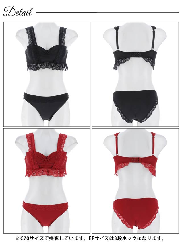 【EFサイズ】フリルレーシィギャザーブラジャー&フルバックショーツ[大人気]