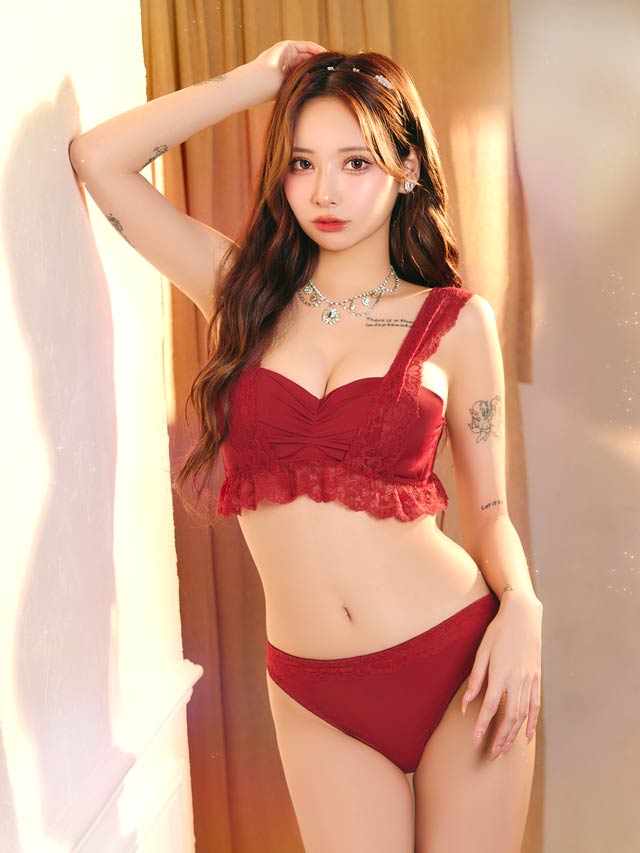 オールレースカットストリング育乳脇高ブラジャー&バック透けフルバックショーツ