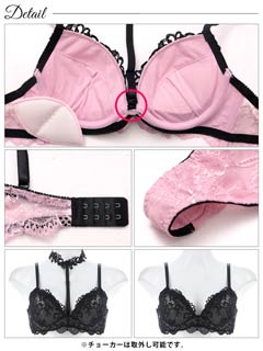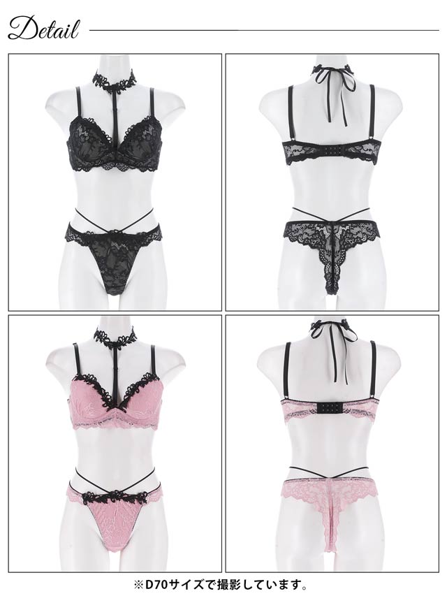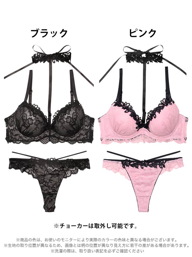 ラグジュアリーレースチョーカーブラジャー&バック透けTバックショーツ[大人気]