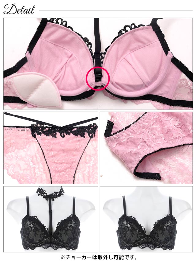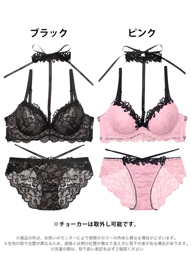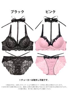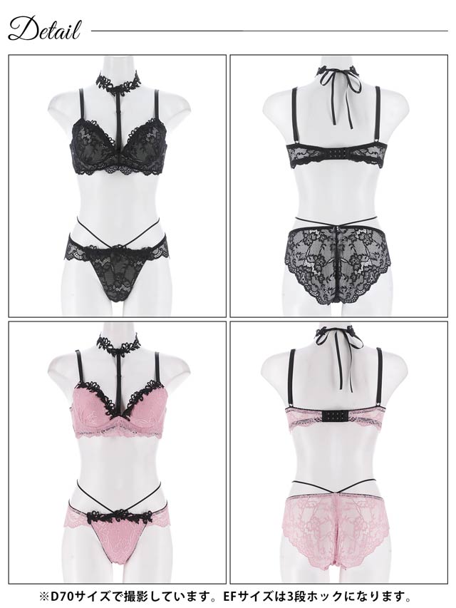 【EFサイズ】ラグジュアリーレースチョーカーブラジャー&バック透けフルバックショーツ[大人気]