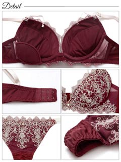 ダスティブルームエンブロイダリー育乳脇高ブラジャー&バック透けフルバックショーツ