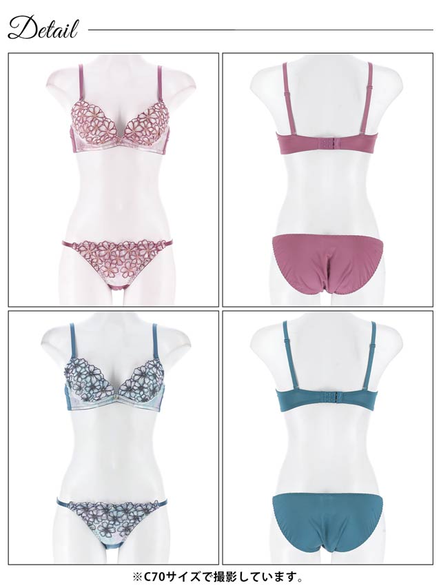 ダスティブルームエンブロイダリー育乳脇高ブラジャー&バック透けフルバックショーツ