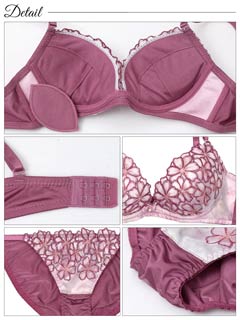 12/2再販!ダスティブルームエンブロイダリー育乳脇高ブラジャー&バック透けフルバックショーツ[激売れ]