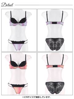 【GHサイズ】レーシーグロスブラジャー&サイド紐フルバックショーツ