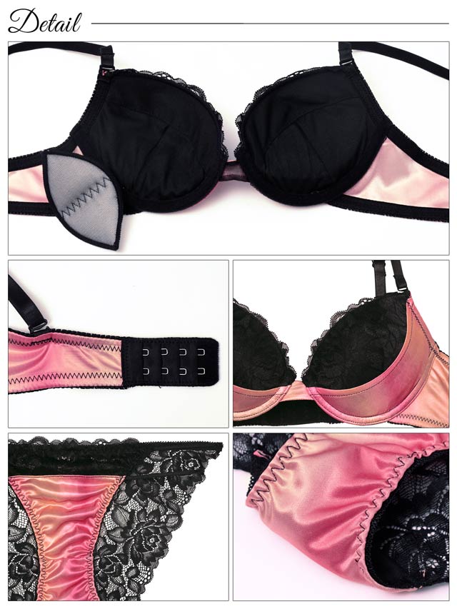 オールレースカットストリング育乳脇高ブラジャー&バック透けフルバックショーツ