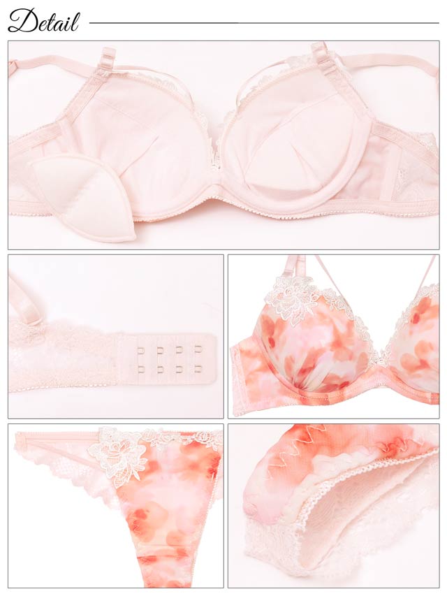 10/23再販!パステルシャドウフラワー育乳脇高ブラジャー&Tバックショーツ[激売れ]
