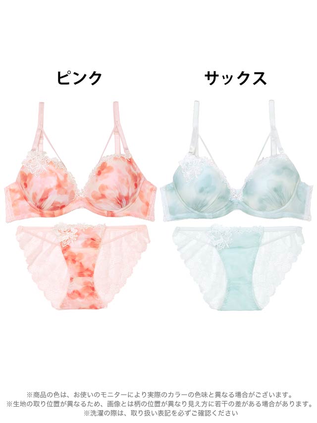 ダスティブルームエンブロイダリー育乳脇高ブラジャー&バック透けフルバックショーツ