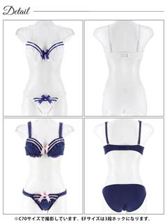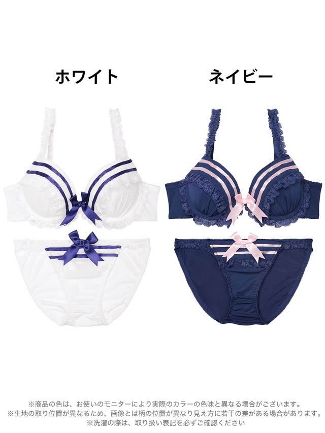 【EFサイズ】キュートマリンセーラーブラジャー&フルバックショーツ[大人気]