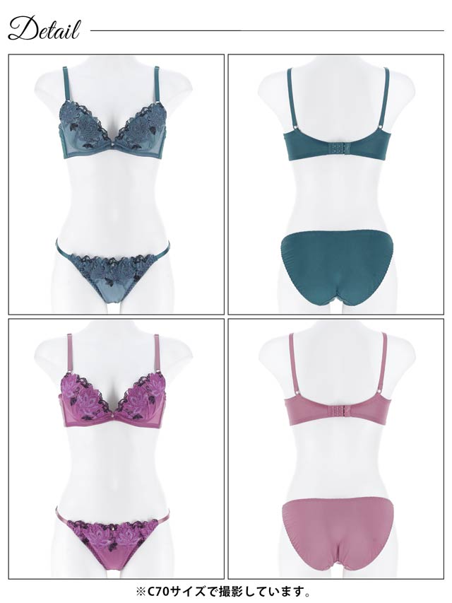 ダスティブルームエンブロイダリー育乳脇高ブラジャー&バック透けフルバックショーツ